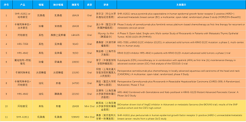 15款创新药包括10款已上市产品:注射用瑞康曲妥珠单抗(艾维达®,研发代号:SHR-A1811)、注射用卡瑞利珠单抗(艾瑞卡®)、苹果酸法米替尼胶囊(艾比特®)、甲磺酸阿帕替尼片(艾坦®)、马来酸吡咯替尼片(艾瑞妮®)、阿得贝利单抗注射液(艾瑞利®)、羟乙磺酸达尔西利片(艾瑞康®)、氟唑帕利胶囊(艾瑞颐®)、瑞维鲁胺片(艾瑞恩®)、海曲泊帕乙醇胺片(恒曲®),以及5款未上市产品,包括KRASG12C抑制剂HRS-7058、KRASG12D抑制剂HRS-4642、选择性的AR-PROTAC(雄激素受体-蛋白降解靶向嵌合体)小分子HRS-5041、抗PD-L1/TGF-βRII双抗瑞拉芙普-α注射液(SHR-1701)、Trop-2 ADC SHR-A1921。2类新药盐酸伊立替康脂质体注射液(II)(越优力®)及国内首仿药昂丹司琼口溶膜(艾其速®)各有1项研究入选。本文特对研究成果做了梳理,带领各位读者领略BBIN宝盈医药创新之光。